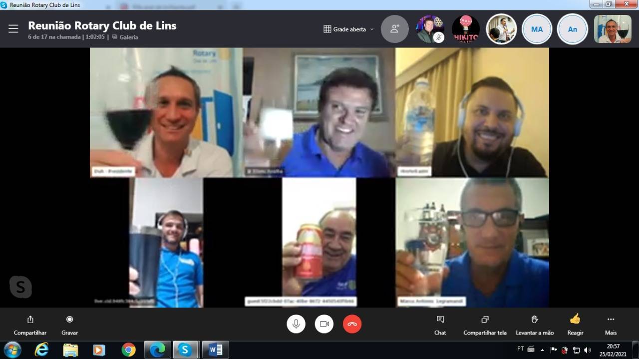 Ao final da reunião, os companheiros fizeram um brinde virtual em homenagem ao aniversário de 116 anos do Rotary International.