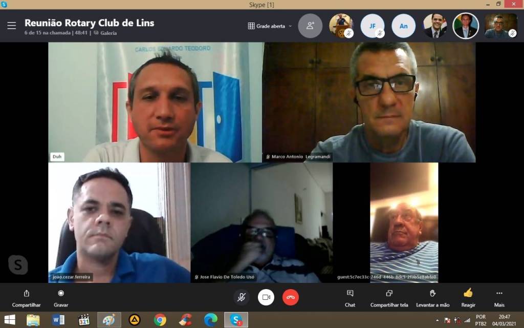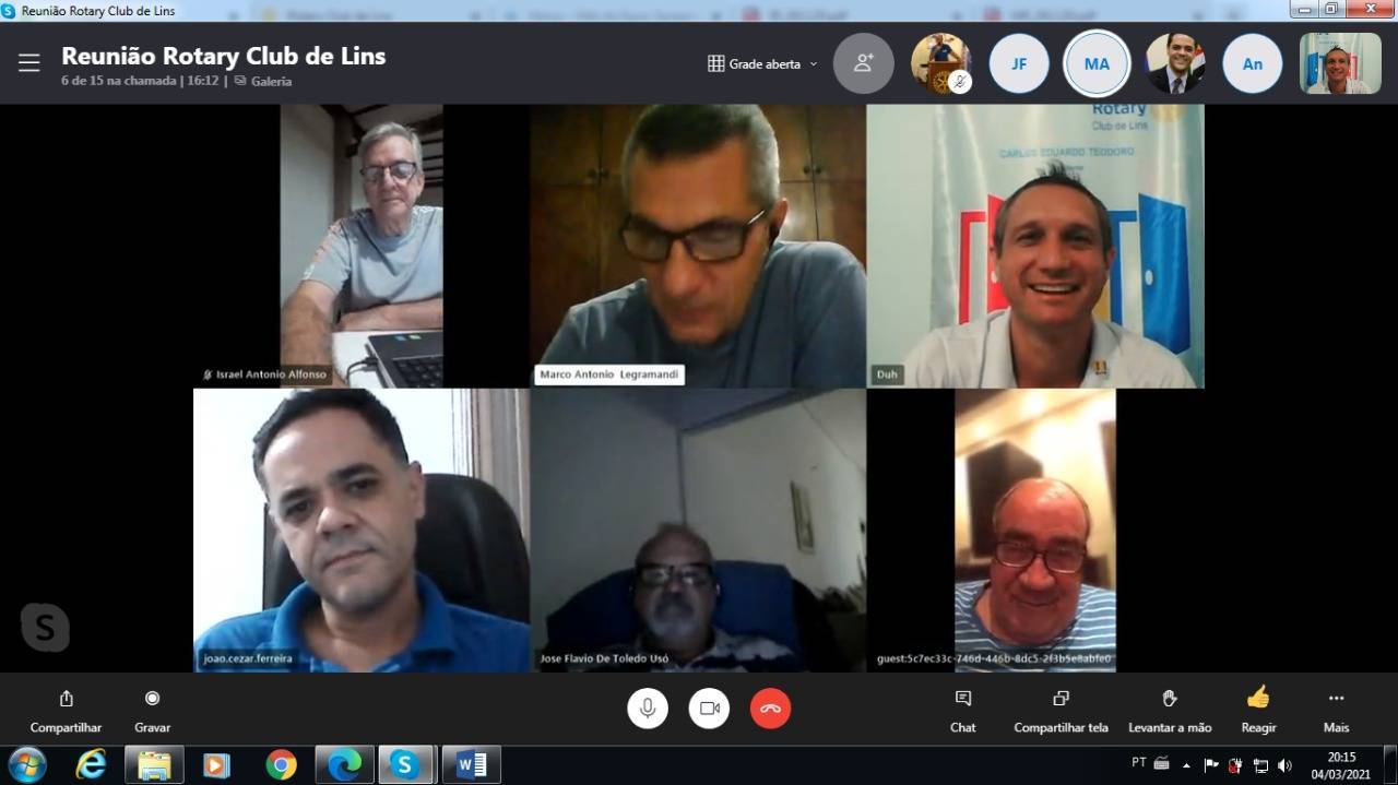 No dia 04 de Março de 2021 as 20:00 hs aconteceu a 19ª Reunião Ordinária do Rotary Club de Lins. Reunião virtual pelo aplicativo Skype devido a necessidade de isolamento social em função da Pandemia que estamos passando.