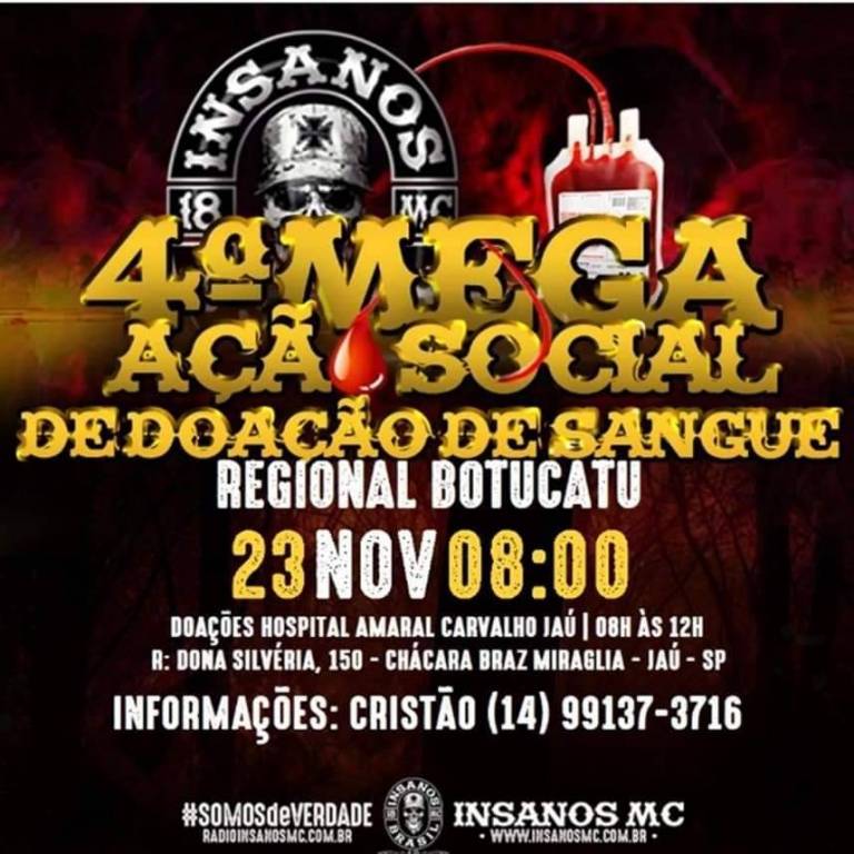Gostaria de agradecer a parceria nessa ação social tão importante para o Insanos M.C. e para toda população de Jaú e Região!