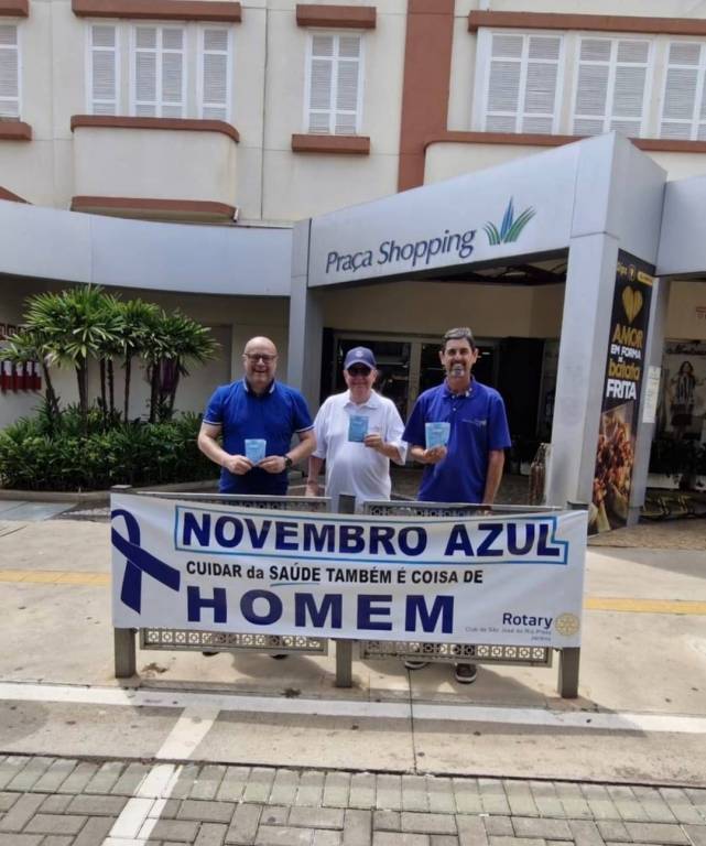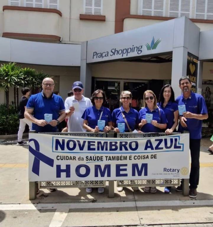 Na manhã do dia 23/11/24, o Rotary Club de São José do Rio Preto - Jardins, com a presença do Pres. Agostinho Donizeti Ferreira, companheiros e Rotaractianos estiveram presentes no Praça Shopping, no centro de São José do Rio Preto, na campanha do "Novembro Azul" para a conscientização junto à população sobre a importância da prevenção do câncer de próstata.
