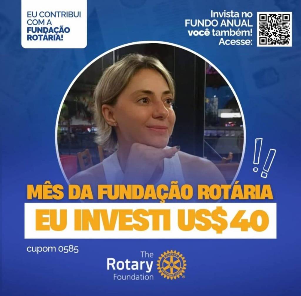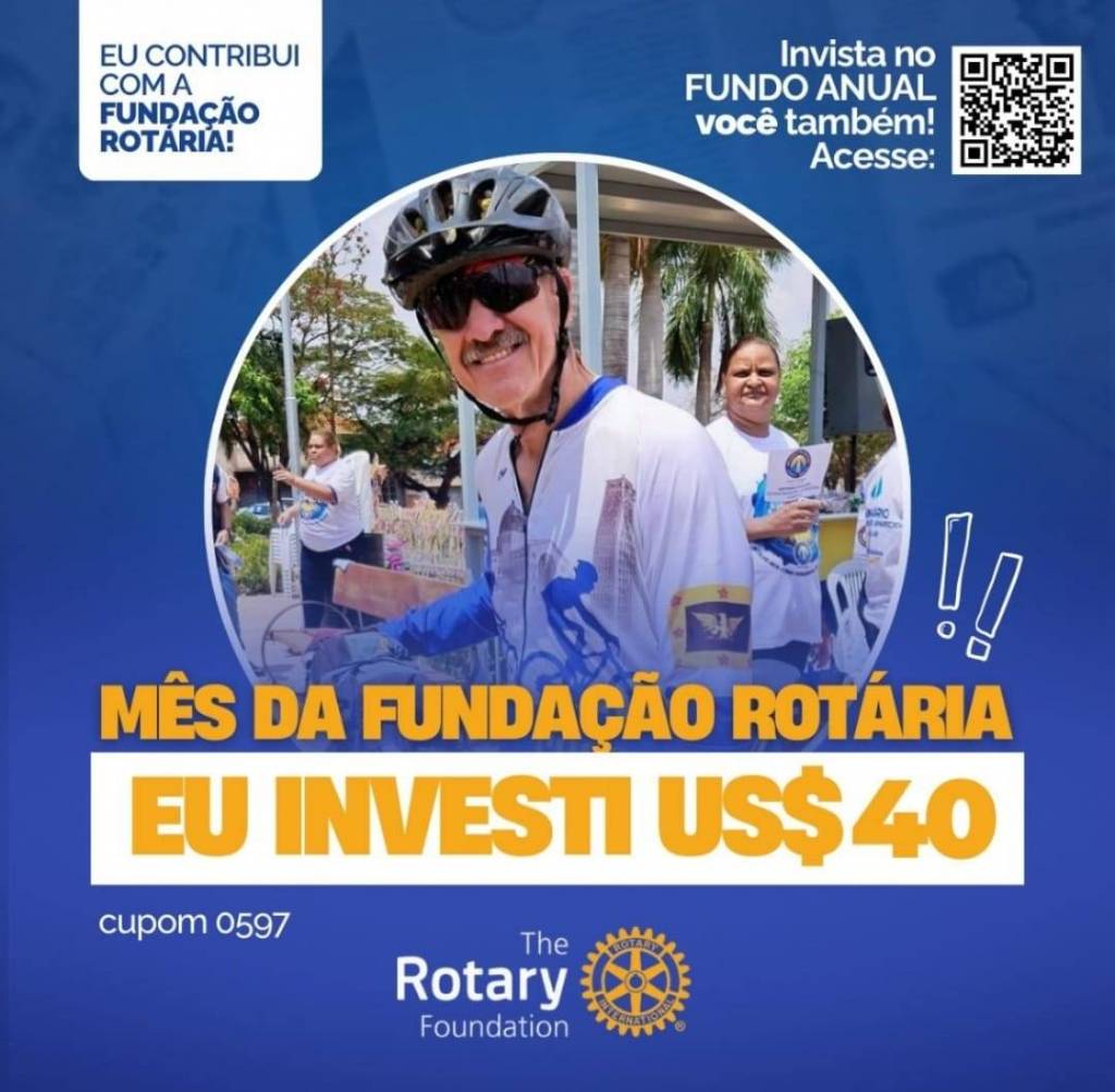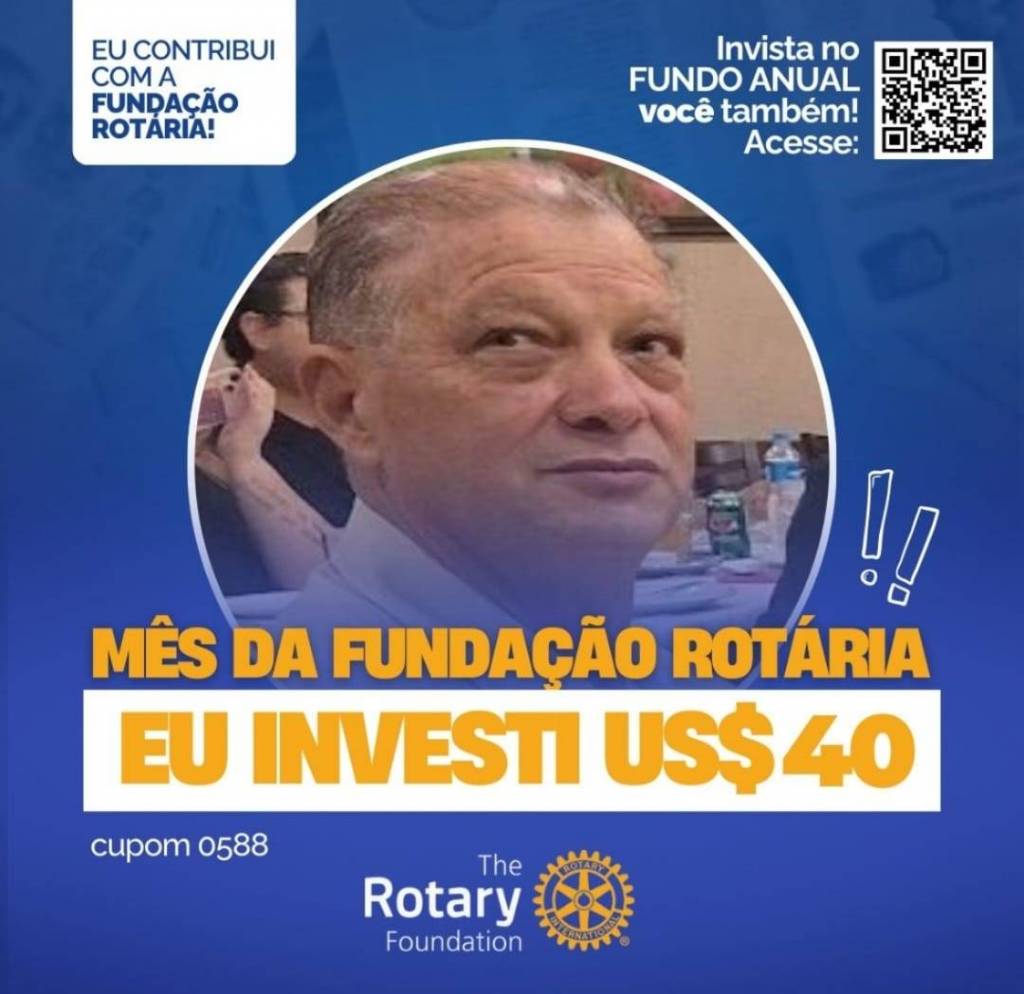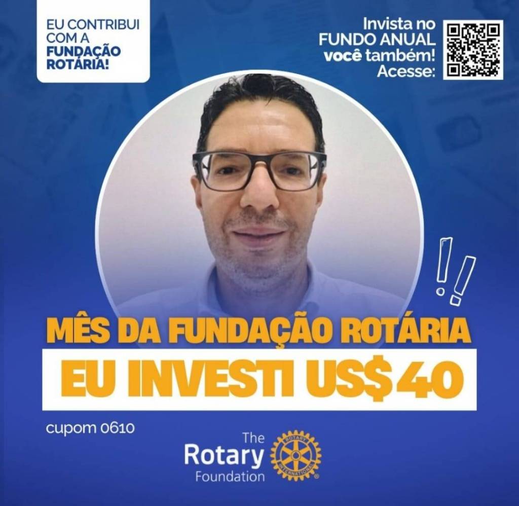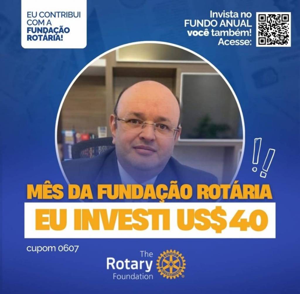 Invista no FUNDO ANUAL no mês da celebração da Fundação Rotária. Que tal você e o seu clube investir também? Parte deste valor voltará para o clube na Gestão 2027-28.