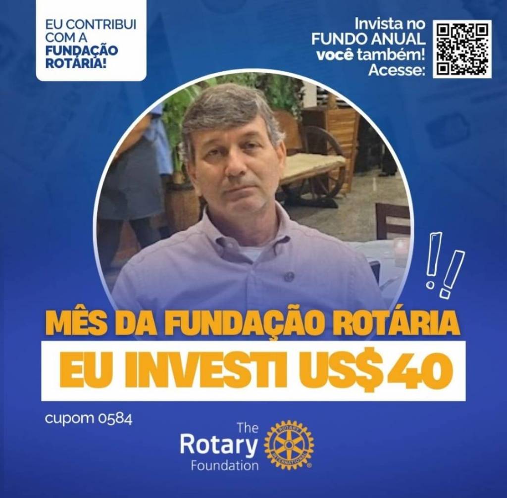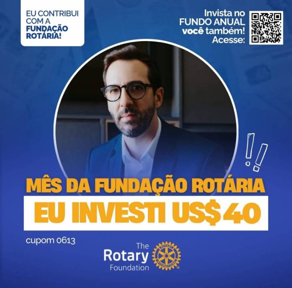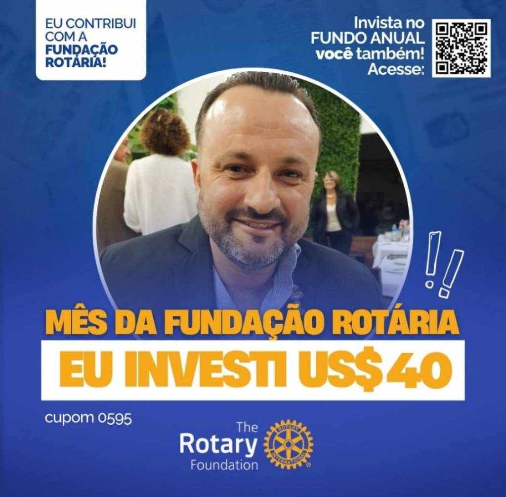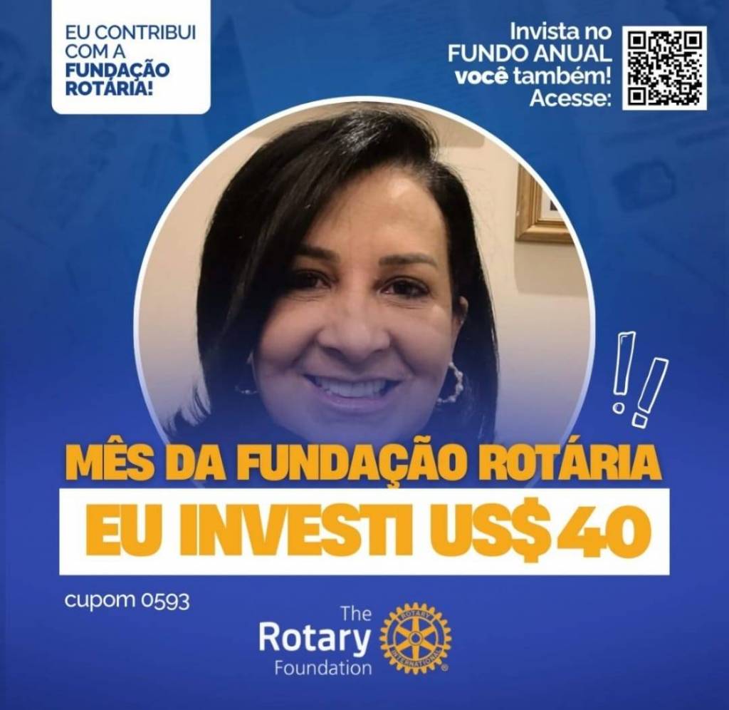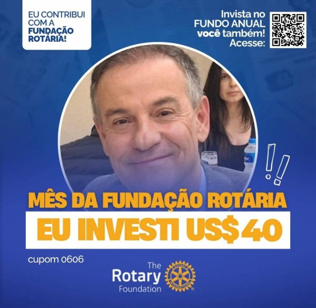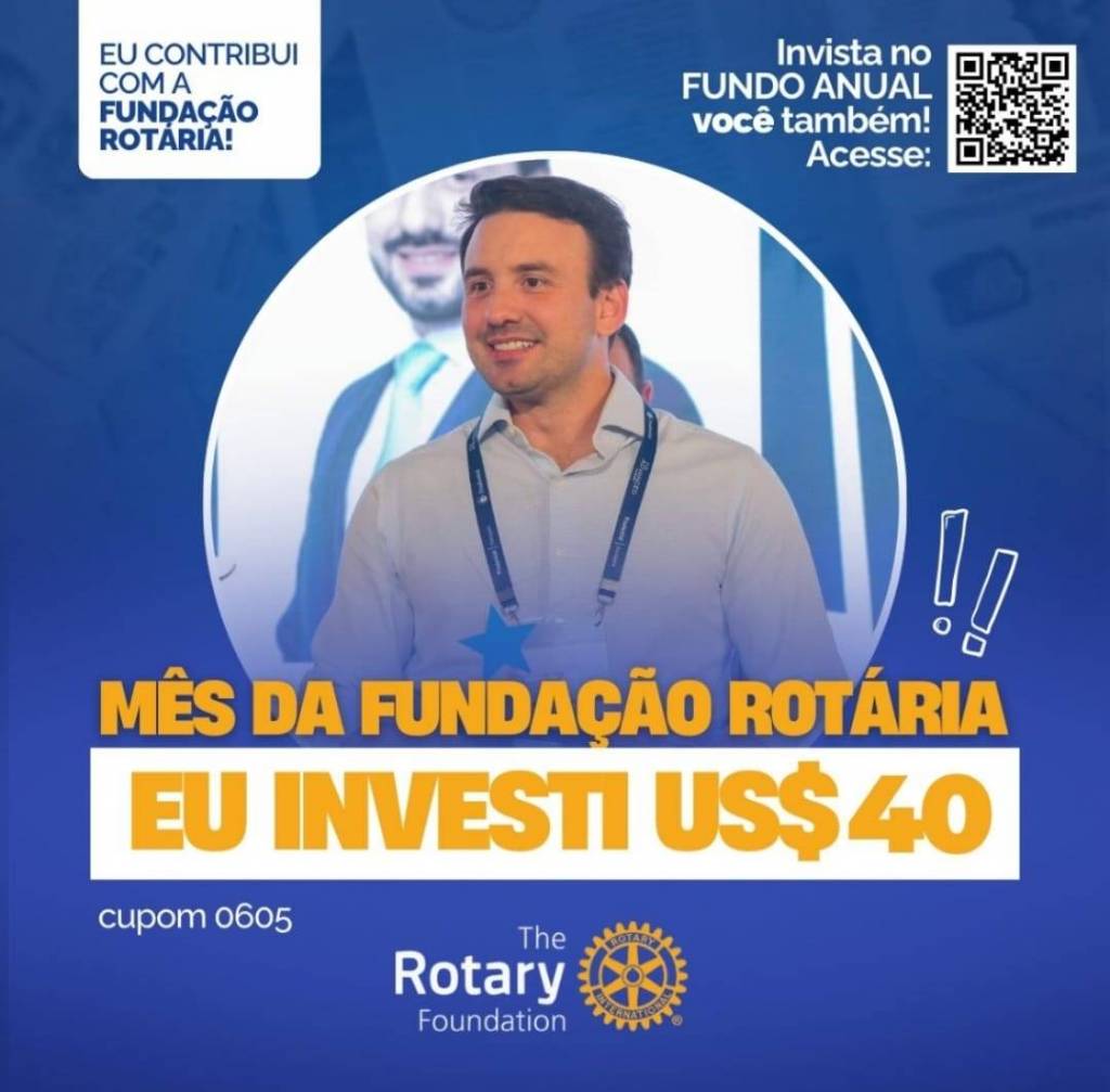 Invista no FUNDO ANUAL no mês da celebração da Fundação Rotária. Que tal você e o seu clube investir também? Parte deste valor voltará para o clube na Gestão 2027-28.