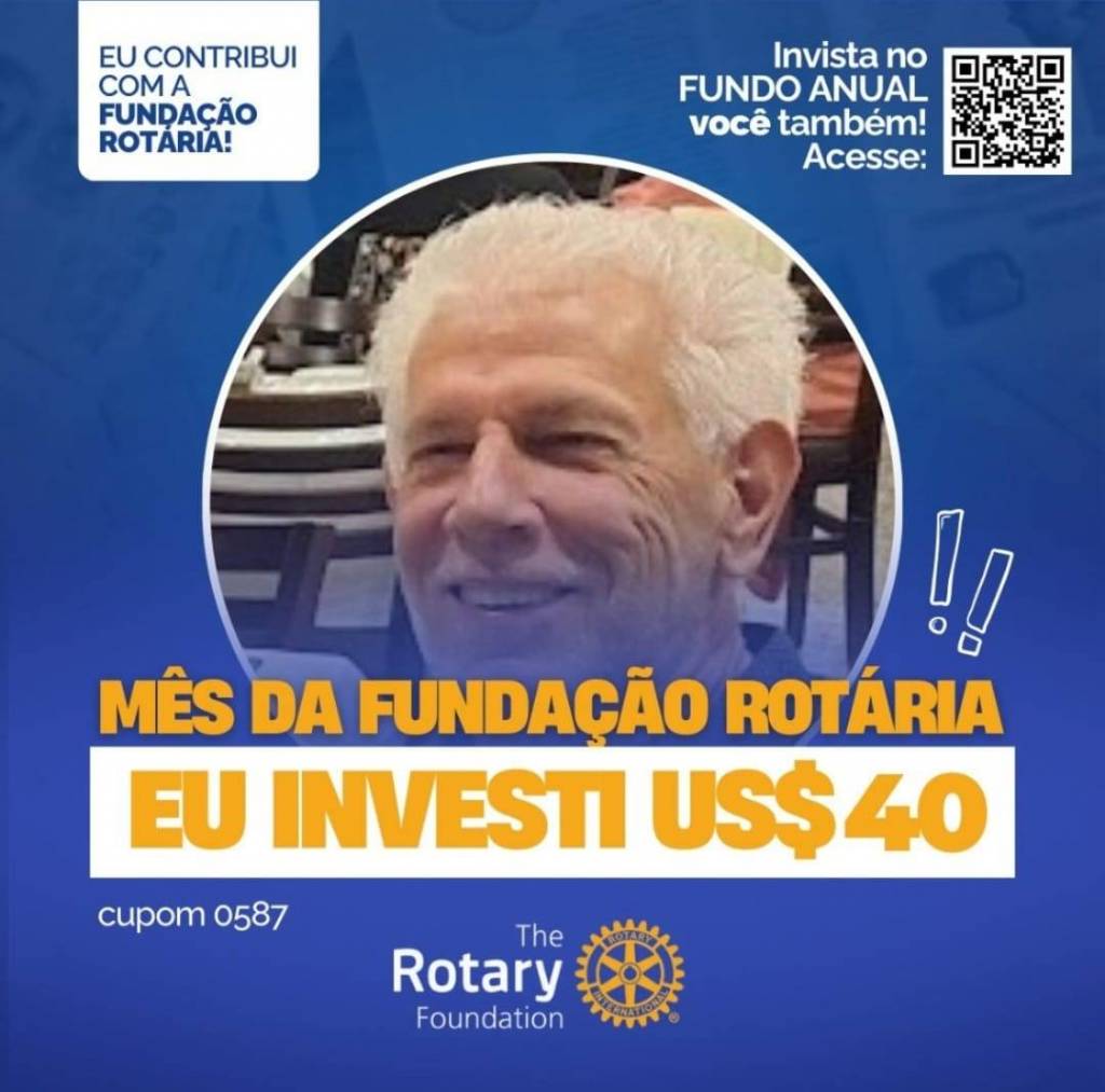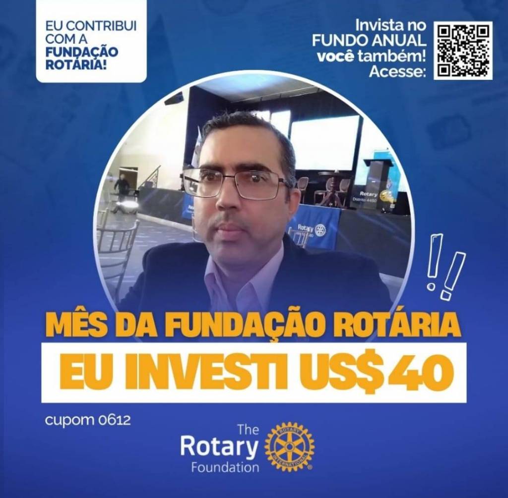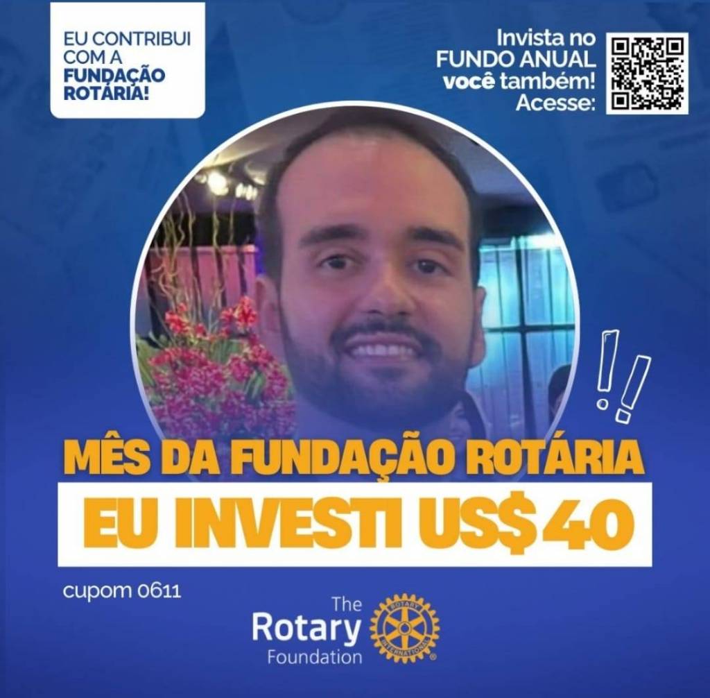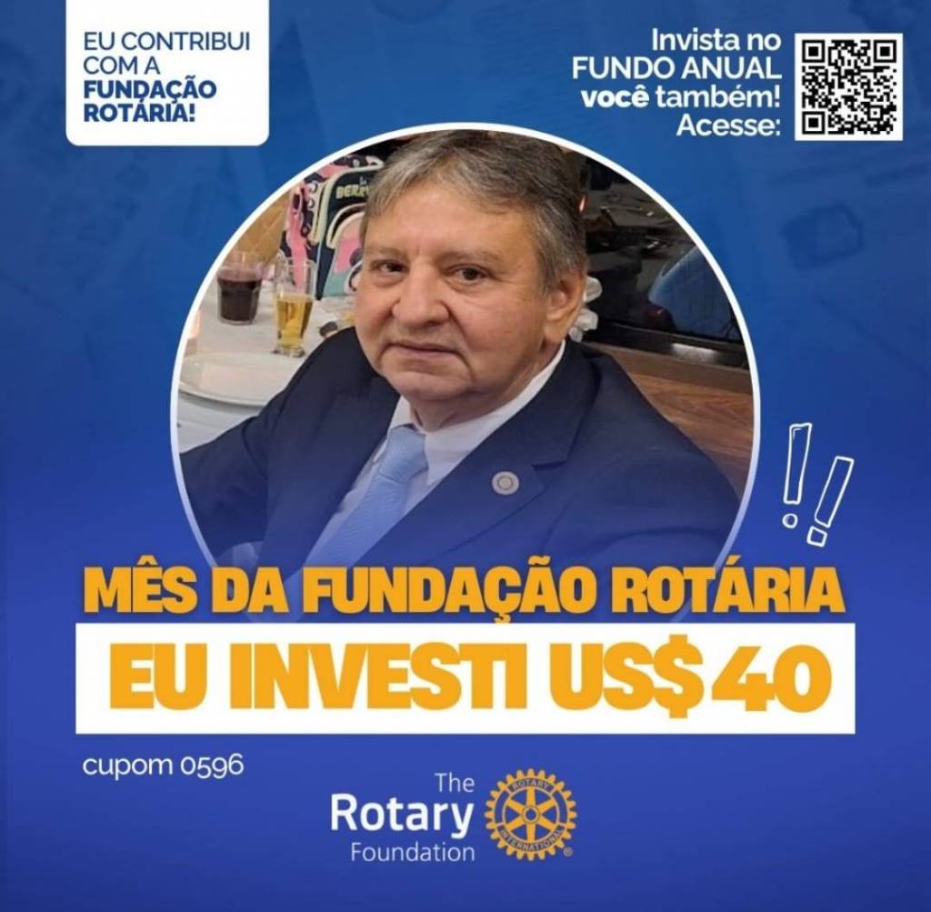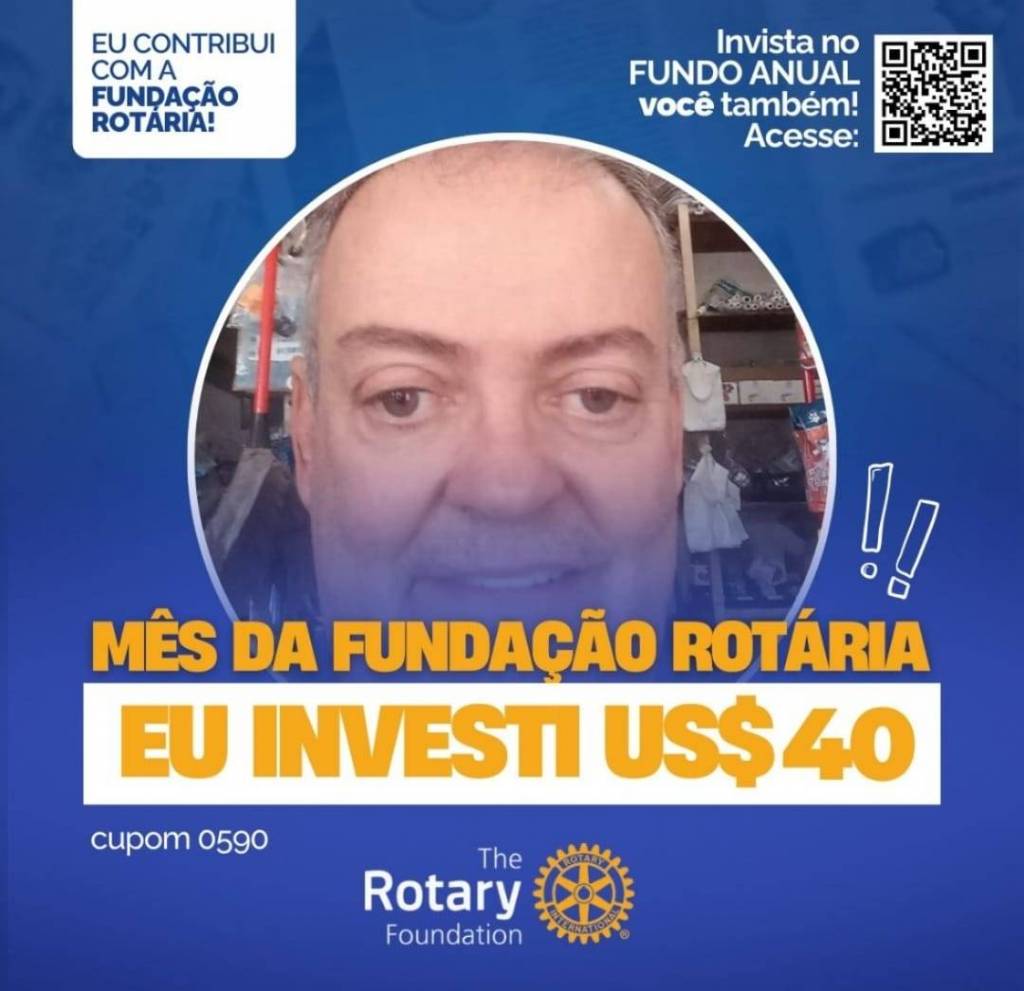 Invista no FUNDO ANUAL no mês da celebração da Fundação Rotária. Que tal você e o seu clube investir também? Parte deste valor voltará para o clube na Gestão 2027-28.