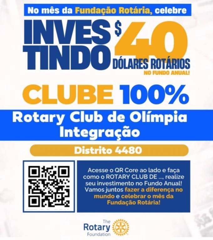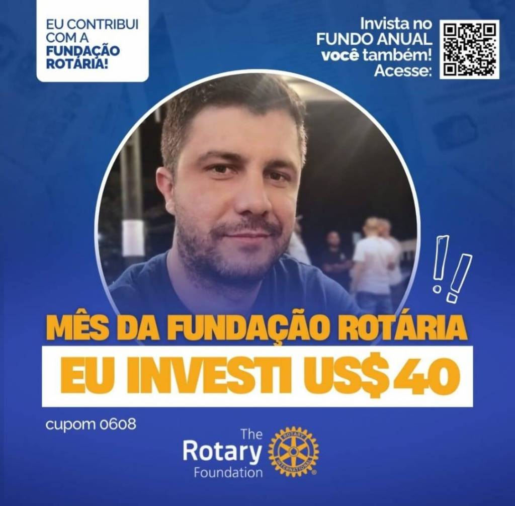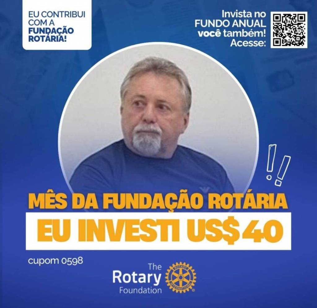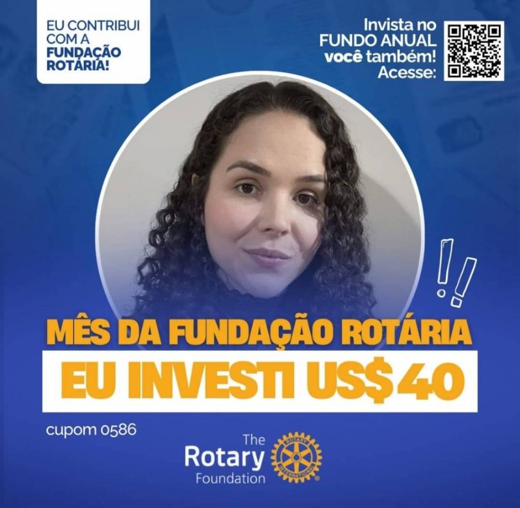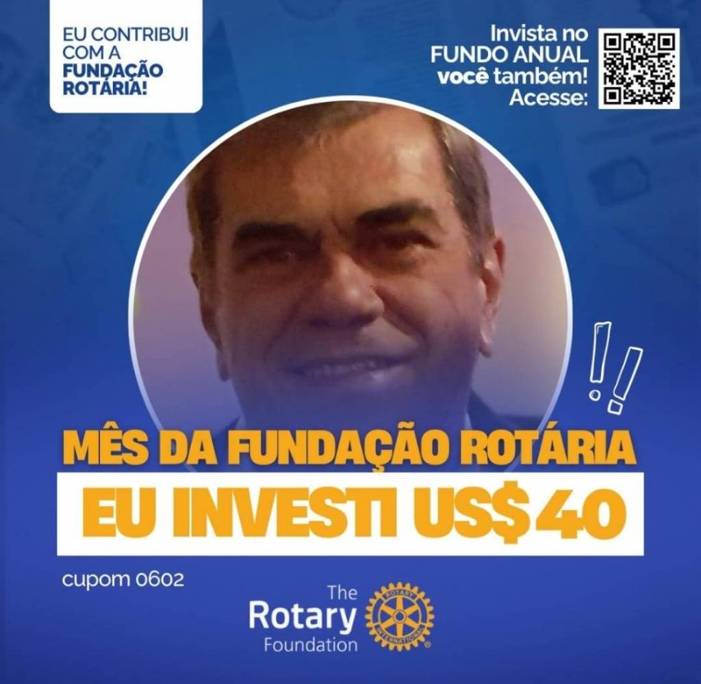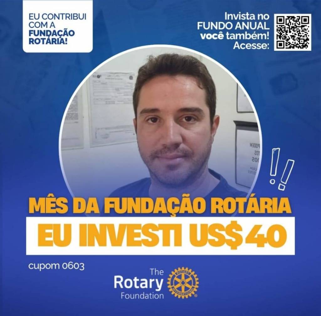 Invista no FUNDO ANUAL no mês da celebração da Fundação Rotária. Que tal você e o seu clube investir também? Parte deste valor voltará para o clube na Gestão 2027-28.