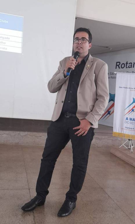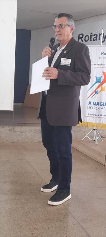 O casal Gov. do Distrito 4480 do Rotary International, Eder Bocchini e Nelly apresentaram ao Colégio de Govs e Govs. Assistentes, o Gov. Distrital recém eleito para o ano rotário 2027-28