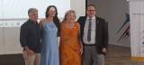 A imagem mostra quatro pessoas posando para uma foto em um ambiente interno, possivelmente em um evento formal. Da esquerda para a direita: