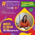 Os participantes têm seus nomes exibidos abaixo de suas imagens, incluindo Simara Pazini, Carlos Daniel, Henrique Misawa, e outros. Alguns participantes estão vestindo camisetas vermelhas com o slogan "End Polio Now", reforçando o foco na campanha de erradicação da poliomielite.