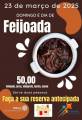 O cartaz anuncia um evento de feijoada que ocorrerá no dia 23 de março de 2025, um domingo. O texto principal diz "Domingo é dia de Feijoada". A imagem mostra uma panela de feijoada. O preço é de 50,00 reais e inclui feijoada, arroz, vinagrete, farofa e couve, servindo duas pessoas. Há uma instrução para "Faça a sua reserva antecipada". No rodapé, há logotipos do Rotary Club de Santa Fé do Sul, da Casa da Amizade e de "A Magia do Rotary".