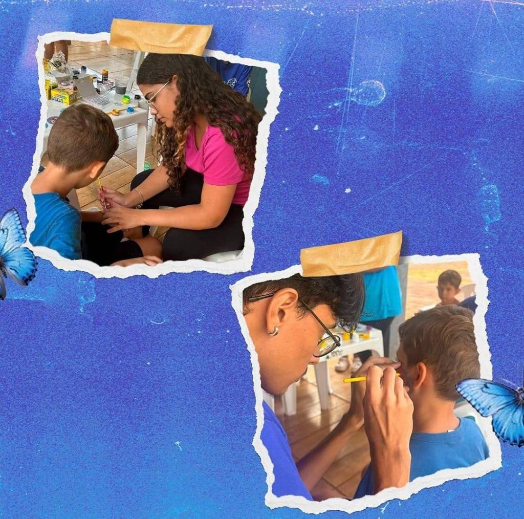 Durante a programação, os interactianos promoveram momentos de diversão e interação, pintando os rostos das crianças e proporcionando instantes de descontração e alegria.