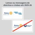 Imagem com fundo cinza claro e texto na parte superior dizendo "Lemas ou mensagens de distritos e clubes em 2025-26". Abaixo, há duas caixas.