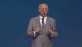 Foto de um senhor calvo usando óculos, de terno cinza com camisa clara e gravata. Ele está à frente de um fundo azul e trás as mãos na frente do corpo e os lábios entre abertos como se estivesse explicando algo àqueles que estão à frente dele.
