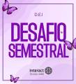 Fundo em tons de lilás com borboletas roxas nos cantos. No centro, em letras grandes e roxas, está escrito "DESAFIO SEMESTRAL". Acima, em letras menores, está "D.E.I". Na parte inferior, o texto "Interact Distrito 4480" ao lado do símbolo do Rotary.