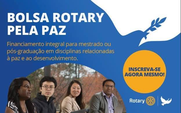 Na esquerda em letras grandes brancas: Bolsa Rotary pela Paz