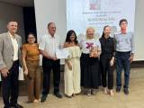 Os Pres. dos clubes presentes que compuseram a mesa diretora fizeram a entrega do Certificado de Palestrante e de um mimo a sr. Lana Braga.