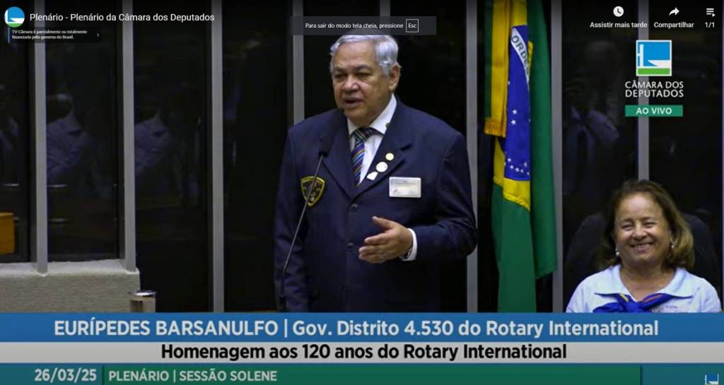 Homenagem aos 120 anos de Rotary International promovida pela Câmara de Deputados do Brasil. com falas das duas Deputadas que assinaram o requerimento de homenagem e de vários Rotarianos líderes no Brasil.