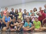Os adultos presentes vestem roupas casuais e parecem acompanhar as crianças. Há homens e mulheres de diferentes idades no grupo.