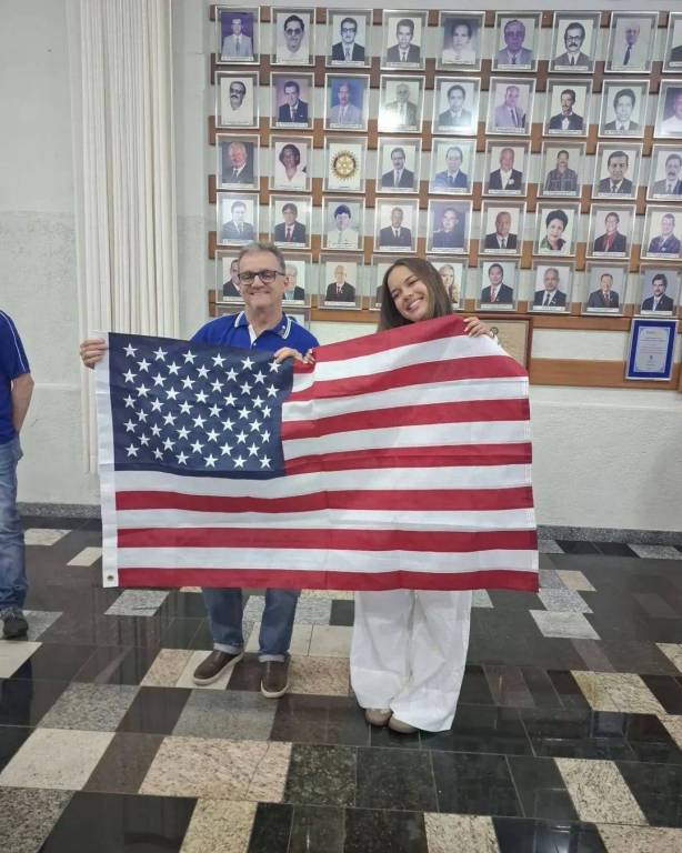 Intercambista Maggie dos EUA realiza palestra no Rotary Club de Santa Fé do Sul para apresentar seu país e cultura