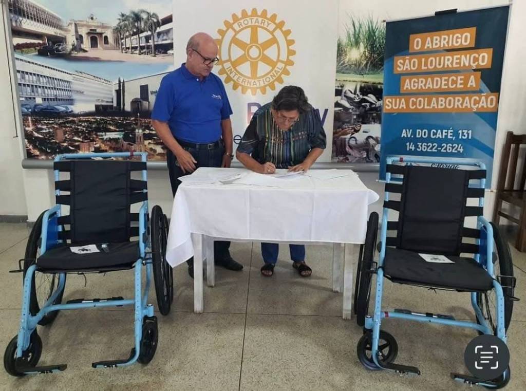 Rotary Club de Jahu - Leste doam cadeiras de rodas do Programa Mobilidade para todos a Abrigo São Lourenço de Jaú