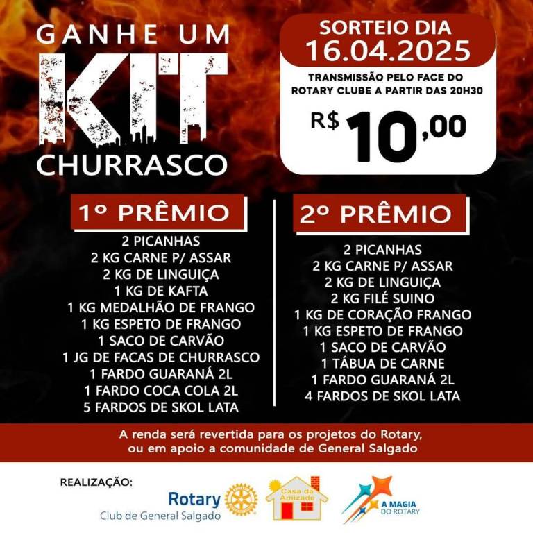 Na noite desta quarta-feira, 16 de Abril, o Rotary Club de General Salgado realizou a 5ª Edição do Kit Churrasco que contou com 2 sorteios.