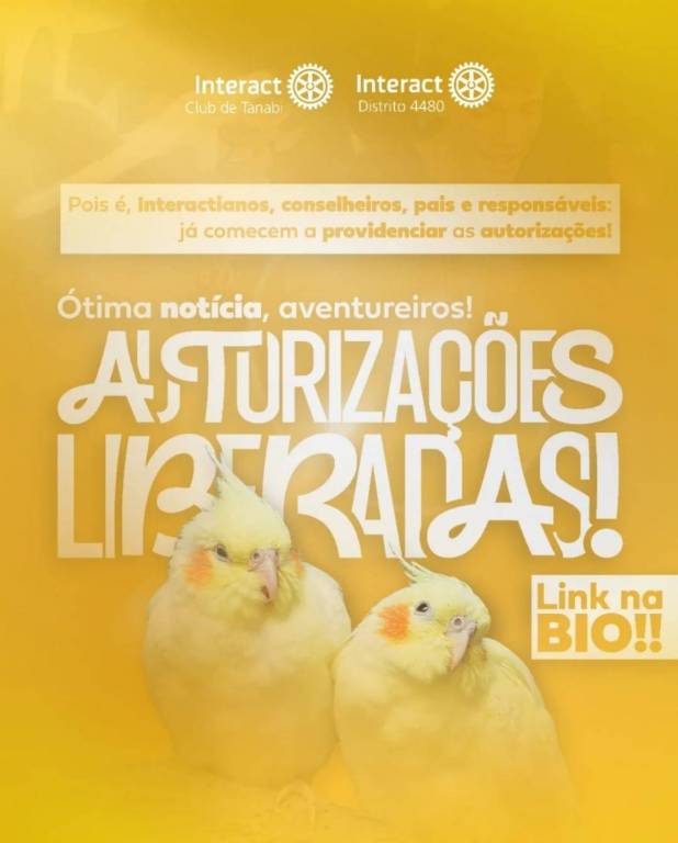 Acima desse texto principal, uma frase menor diz: "Pois é, Interactianos, conselheiros, pais e responsáveis: já comecem a providenciar as autorizações!"