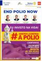 Na lateral esquerda temos o boneco do Zé Gotinha( símbolo da vacinação) sobre uma faixa amarela de fora a fora do card escrita com letras vermelhas: hashtag Junto contra A PÓLIO.