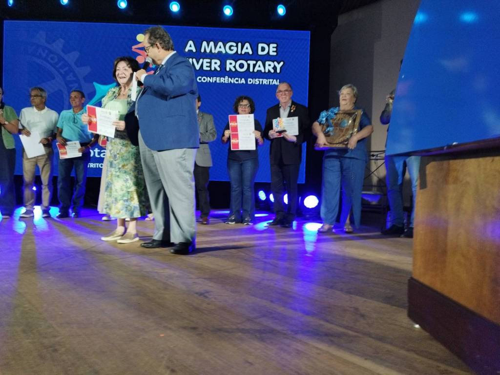 Encerrando o evento na parte da manhã tivemos a homenagem ao primeiro Casal de Govs. do Distrito 4480 - Beninho e Lourdinha Dalto. Infelizmente, Beninho nos deixou recentemente, tornando esta uma homenagem póstuma bela e emotiva.