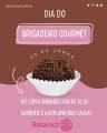A imagem é um cartaz promocional do evento "Dia do Brigadeiro Gourmet", programado para 20 de junho. O cartaz apresenta uma fotografia de um brigadeiro coberto de granulados de chocolate e colocado em uma forminha branca.