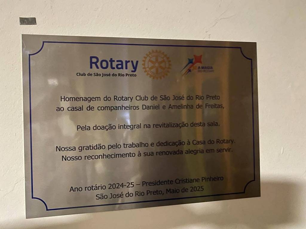 Um agradecimento especial ao casal Daniel de Freitas e Amelinha, pela generosa doação para a reforma da Sala Acervo Histórico Casa do Rotary. Um gesto que fortalece nossa história e inspira o futuro!