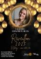 Card fundo preto com balões dourados vindo de cima para baixo até o meio, trás um círculo centralizado acima com a foto de perfil de uma mulher loira, sorridente, vestindo blusa ombro a ombro estampada. Circundando o círculo temos um pó dourado.
