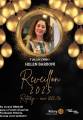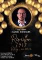 Cartaz comemorativo de Réveillon. No centro superior, há uma foto de um homem de meia-idade, pele clara, barba rala, cabelos curtos e escuros, usando óculos e terno escuro com camisa branca. A foto está emoldurada por um círculo dourado com efeito de brilho. Ao redor, há vários balões dourados sobre fundo preto.